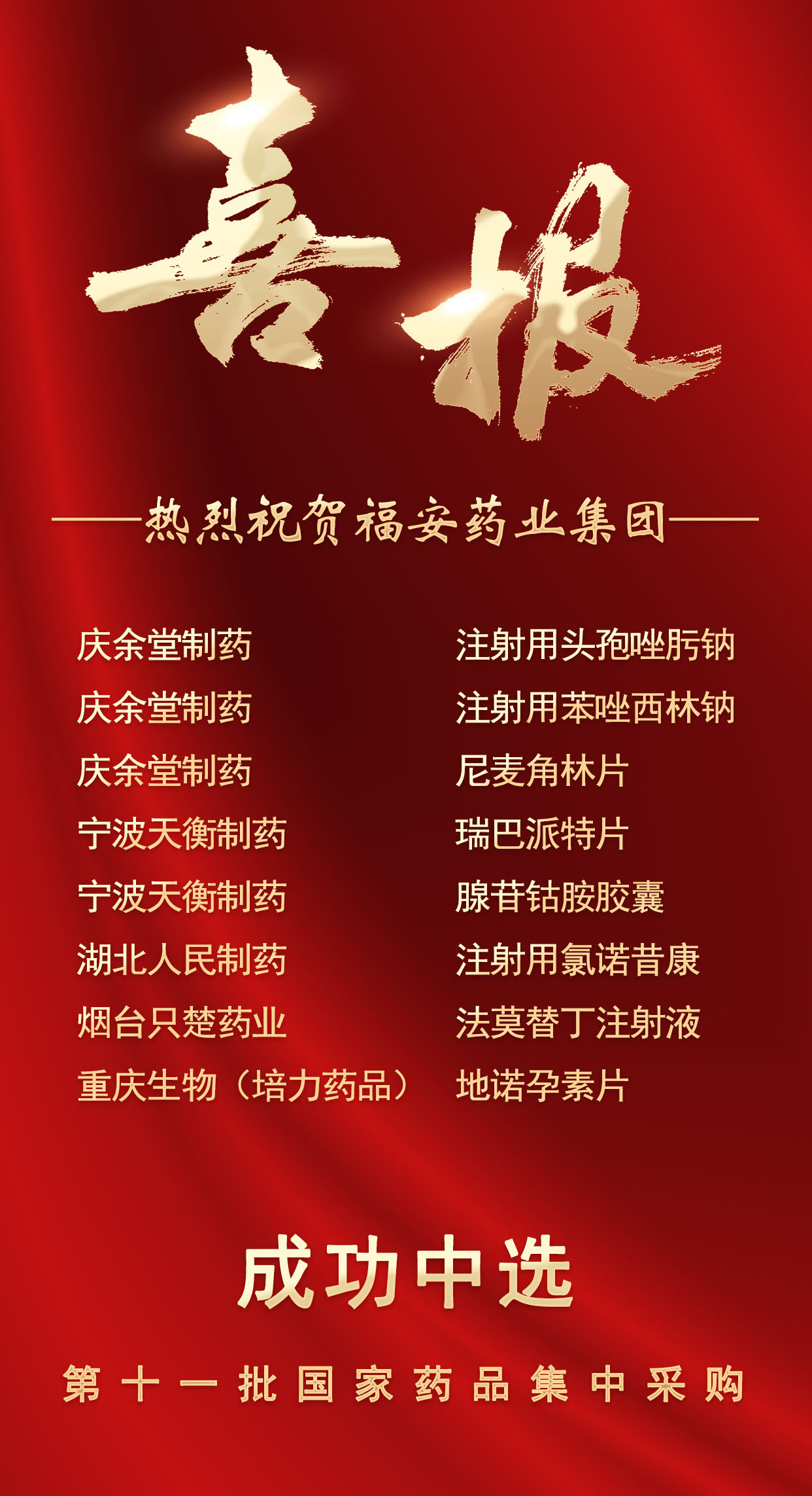 热烈祝贺:福安药业集团成功中选第十一批国家药品集中采购